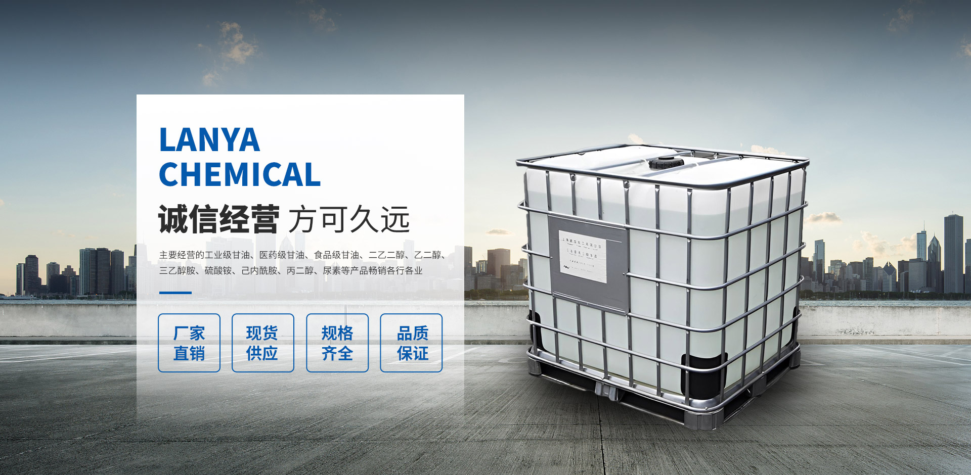常州藍亞新材料科技有限公司是一家集技術研發、技術服務、生產加工、經銷批發為一體的化工經營企業,擁有完整、科學的質量管理體系,以雄厚的實力、低廉的價格,優良的服務與多家企業建立了長期的合作關系。我們有很廣泛的商品信息網絡,合作伙伴遍及世界各地,我們在“質量為先”的經營理念指導下,經過全體員工的不懈努力,以經取得了令人矚目的成績,并擁有一支業務精通、操作能力強的骨干隊伍。公司實力雄厚,重信用、守合同、保證產品質量,產品品種齊全、價格合理,以多品種經營特色和薄利多銷的原則,贏得了廣大客戶的信任。 藍亞化工,主要經營的工業級甘油、醫藥級甘油、食品級甘油、二乙二醇、乙二醇、三乙醇胺、硫酸銨、己內酰胺、丙二醇、尿素等產品暢銷各行各業,在各大企業當中享有較高的地位。公司與多家加工廠、零售商和代理商建立了長期穩定的合作關系。本公司的二乙二醇、工業級甘油、三乙醇胺等液體散裝有機化學品品種齊全、價格合理,廣泛用于各行各業?! 」疚挥谀壳爸袊呋盍Φ拈L江三角洲地區有發展潛力的城市—常州,地理位置得天獨厚,水陸交通便利。
